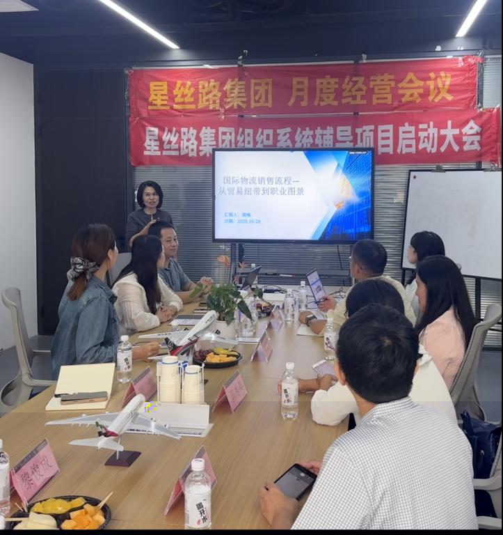 星絲路集團人事行政部負責人陳振亮先生對師生一行表示熱烈歡迎,并詳細介紹了企業發展曆程、組織架構及全球布局。星絲路集團成立于2004年,是一家集國際物流、跨境電商、海外倉儲與供應鍊管理為一體的綜合型外貿服務企業。公司總部位于廣州,在全國設有13個分支機構,海外設點覆蓋非洲、中東及東南亞多個國家,客戶包括中國中鐵、小米、創維等知名企業,連續多年榮獲“大灣區航空運輸十大物流企業”稱号。憑借穩定的網絡與服務體系,星絲路集團已成為中國企業“走出去”的重要支撐平台。